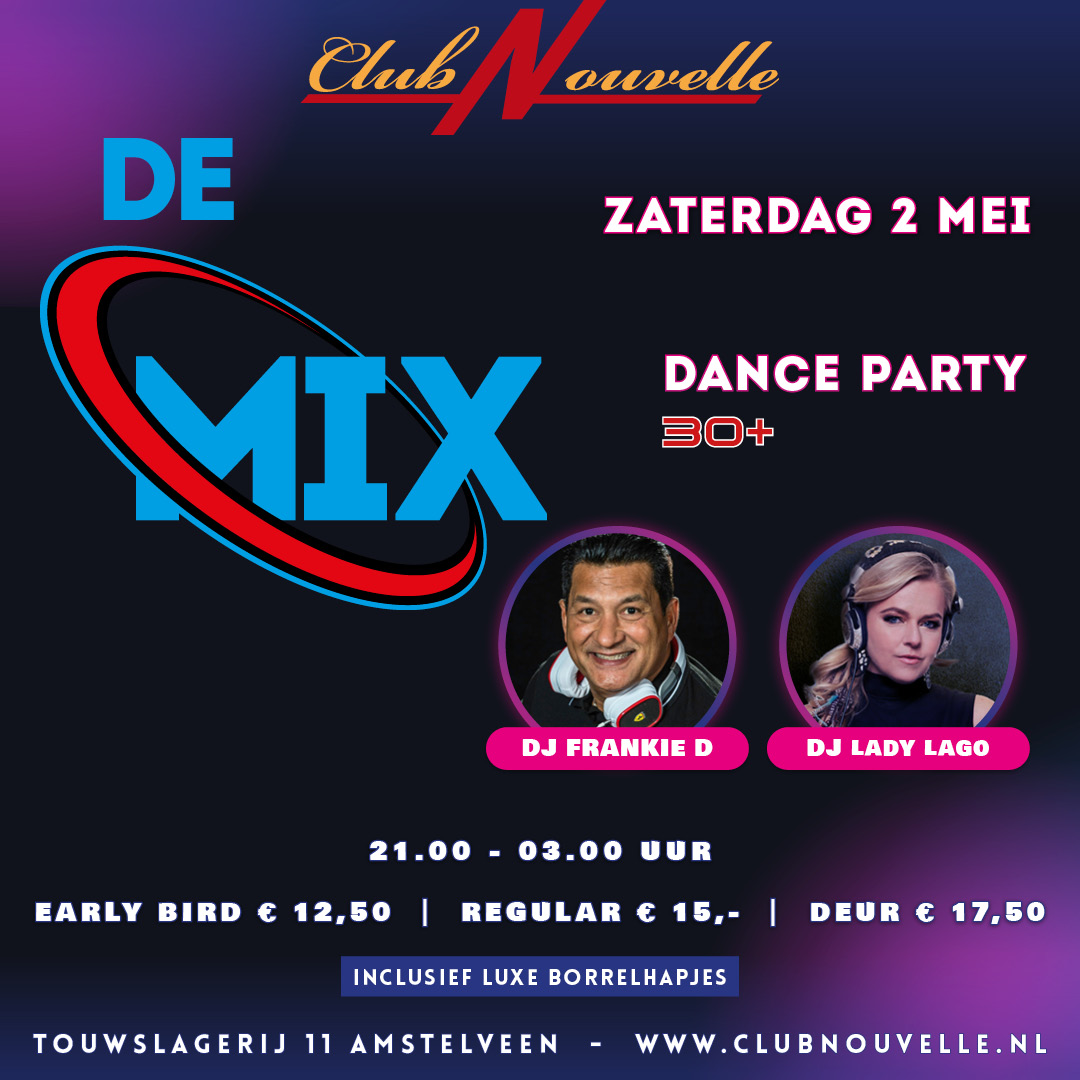 30+ DANCE PARTY "DE MIX" MET DJ FRANKIE D. & DJ LADY LAGO