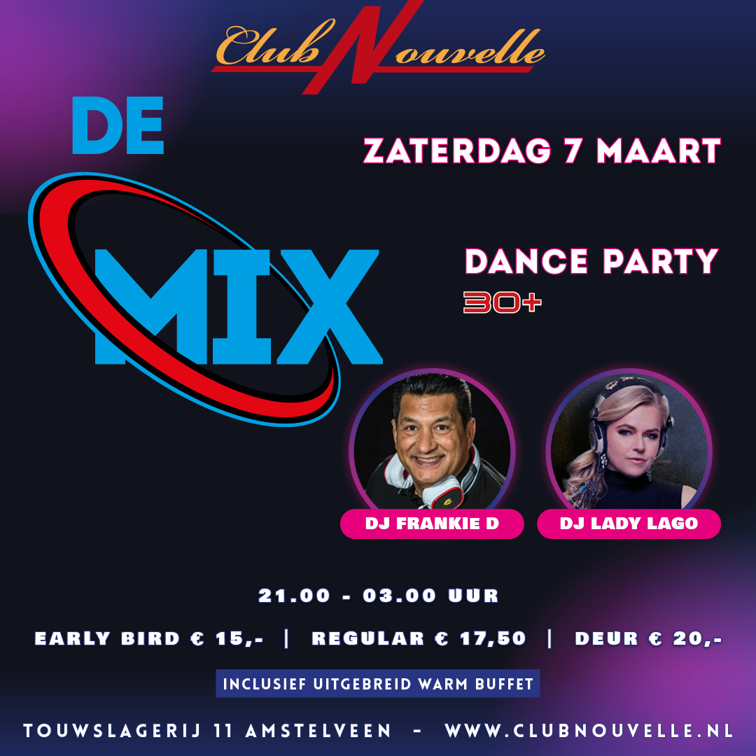 30+ DANCE PARTY "DE MIX" MET DJ FRANKIE D. & DJ LADY LAGO.