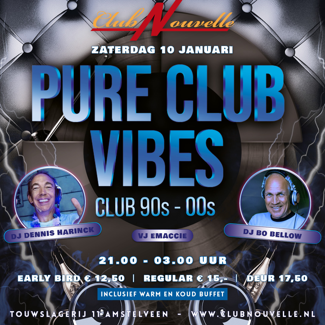 30+ PURE CLUB VIBES PARTY (CLUB 90's-00's) MET DJ BO BELLOW & DJ DENNIS HARINCK