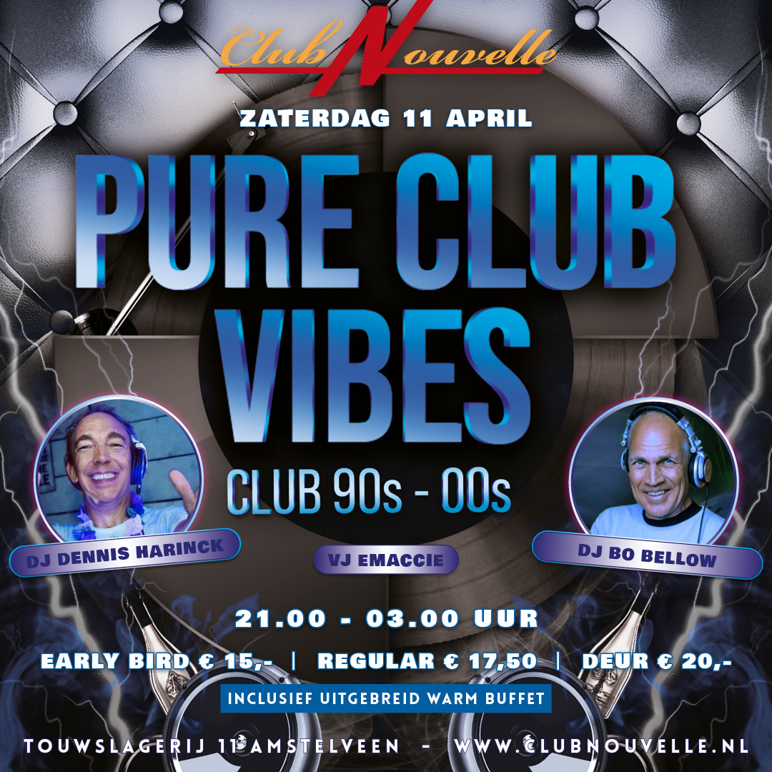 30+ PURE CLUB VIBES PARTY MET DJ BO BELLOW & DJ DENNIS HARINCK IN CLUB NOUVELLE.