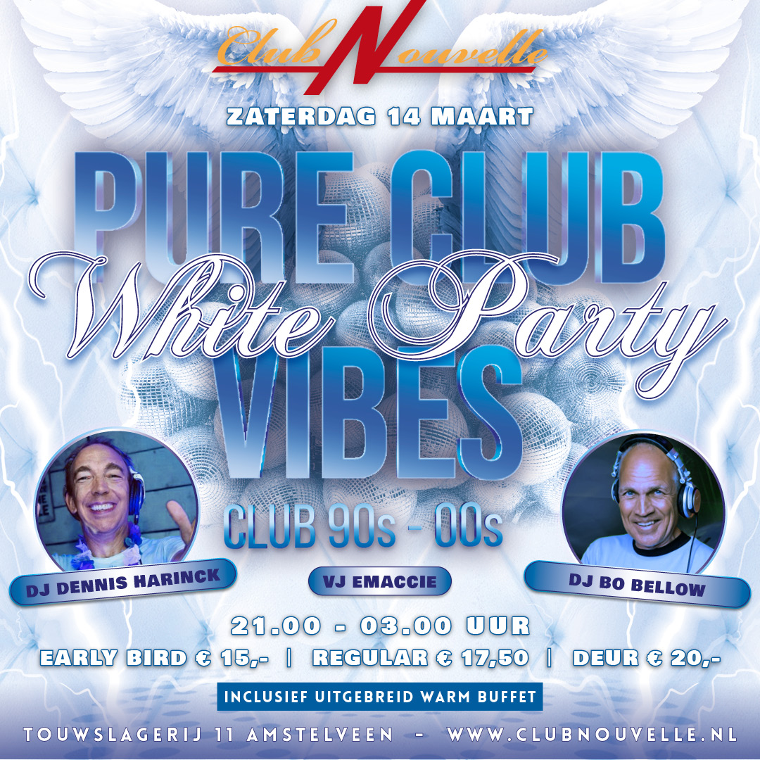 30+ PURE CLUB VIBES PARTY (THE WHITE EDITION ) MET DJ BO BELLOW & DJ DENNIS HARINCK IN CLUB NOUVELLE.