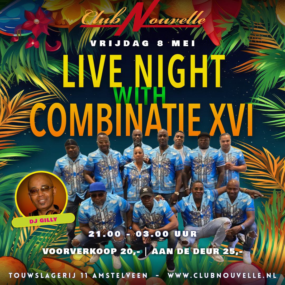 LIVE NIGHT IN CLUB NOUVELLE AMSTELVEEN MET BAND " COMBINATIE XVI " & DJ GILLY...