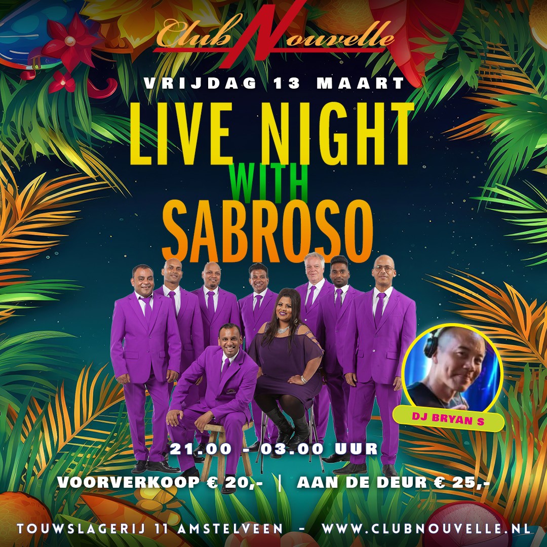 LIVE NIGHT IN CLUB NOUVELLE AMSTELVEEN MET BAND " SABROSO " & DJ GILLY.